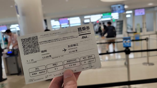 在福岡機場轉搭ANA 12:00的飛機,約40分就能抵達五島