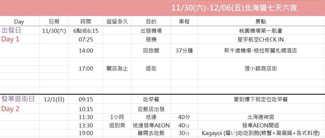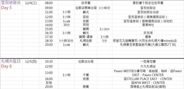 標題[問題] 11/30-12/6北海道七天六夜行程請益