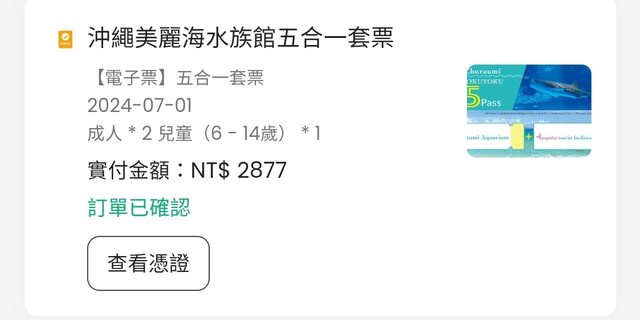 標題[讓售] KLOOK沖繩美麗海水族館五合一套票