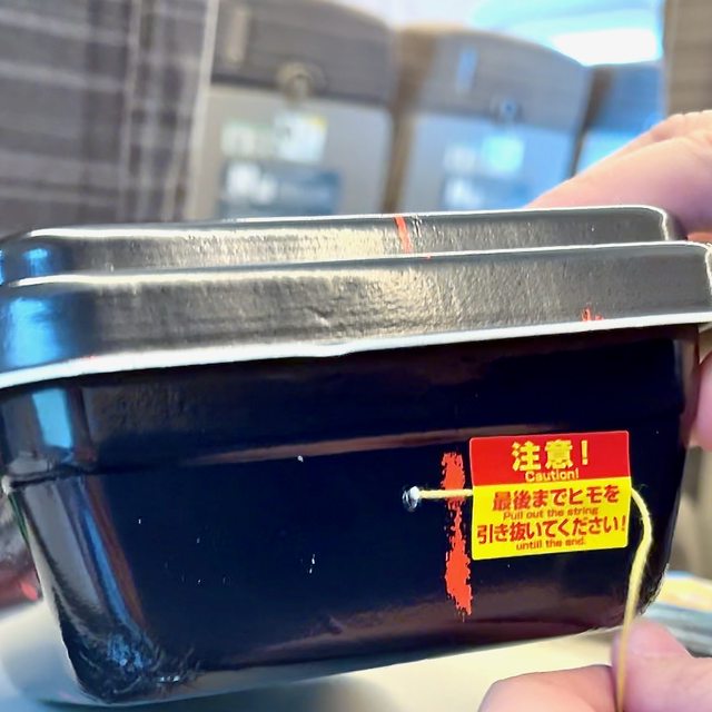 日本幾乎沒有熱的便當,這款是少數買到能加熱的便當,拉開細繩後啟動底下的加熱裝置