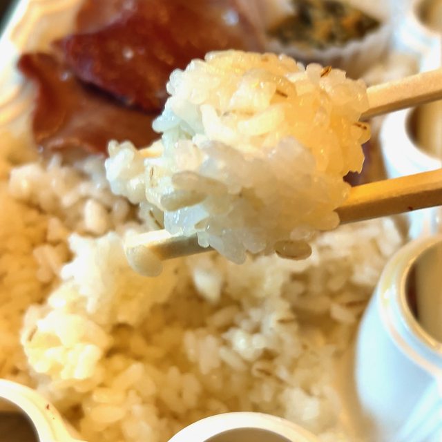 ,便當悶住5-10分鐘可得到溫熱的便當,薄切牛舌加熱吃後較不反感,薄脆牛舌包著麥飯