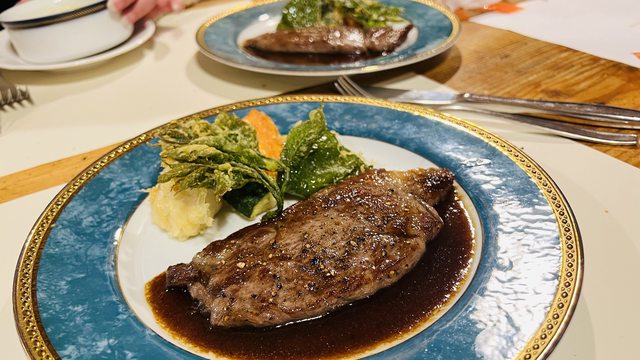 主餐是道產和牛的沙朗牛排,沒有斷面圖,因為開切就迅速吃光光了...怎麼會這麼美味