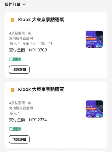 購買klook 4景點通票,但因為突發的行程卡到,只好拆掉這個行程求售。