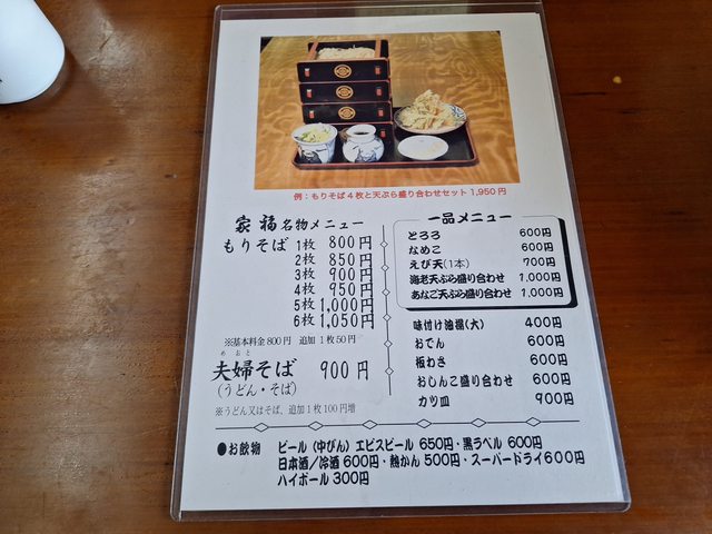 蕎麥麵菜單