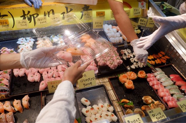 到的時候接近中午12點,只剩賣壽司、生魚片、味噌湯這類的攤販有營業,市場25%的攤