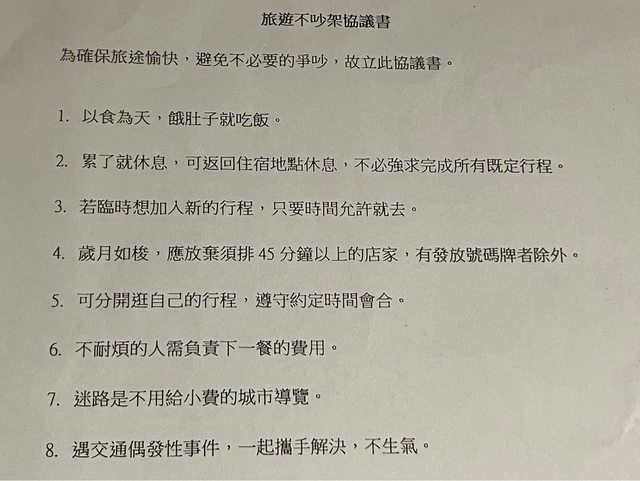 最後最後是旅遊不吵架協議,推薦給任何兩人以上的自助旅遊組合!(尤其你們其中一人對