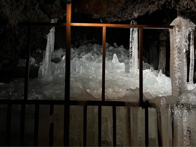 持在0度左右,通過熔岩隧道可欣賞用冰塊堆積而成的冰壁及因水滴落下時凍結而成的冰