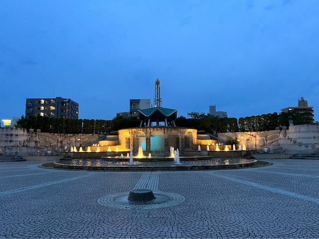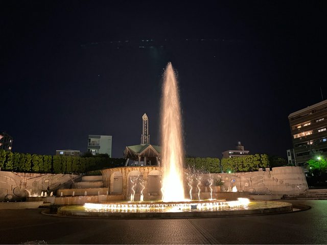 另一側的常磐公園在夜間整點有水舞燈光秀。