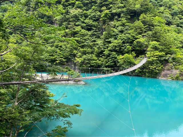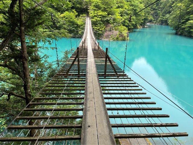 這個就是被旅遊網站評選爲一生一定要走一次的吊橋,搭配藍綠色的湖水,真的很夢幻!