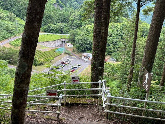 停好車,要先爬120階上坡。