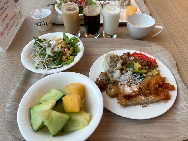 在飯店buffet用完早餐。