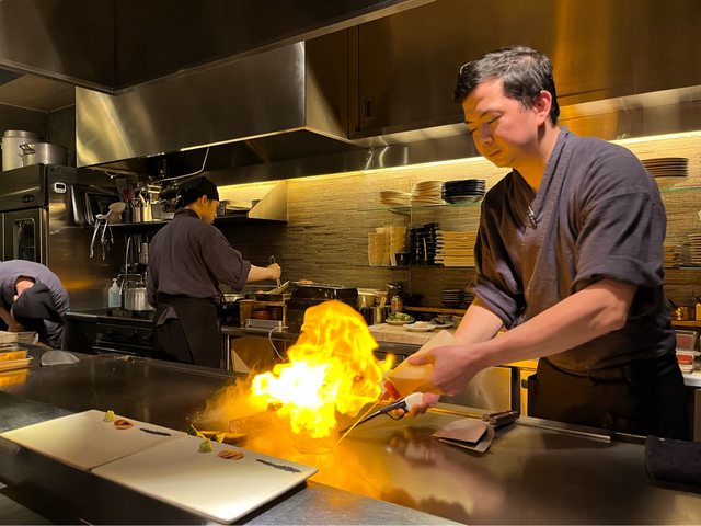 晚餐有預訂鐵板燒一如,離車站約7分鐘,套餐從7,700円起,料理好吃、主廚也親切跟我 們聊天。