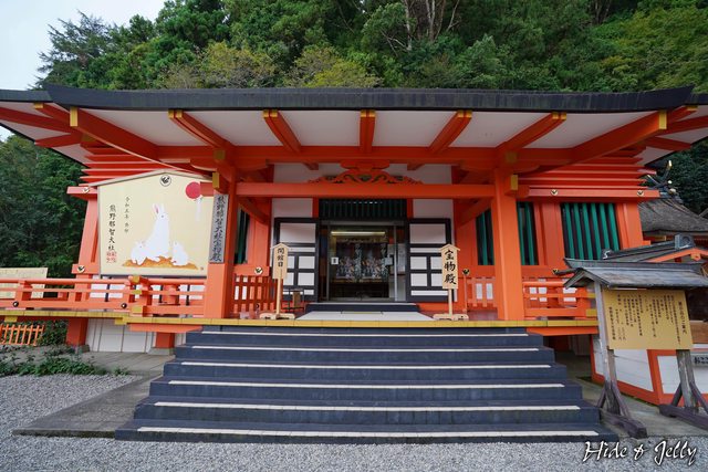 上方的匾額採用了古體所撰寫的「那智山 熊野權現」,蠻特別的。