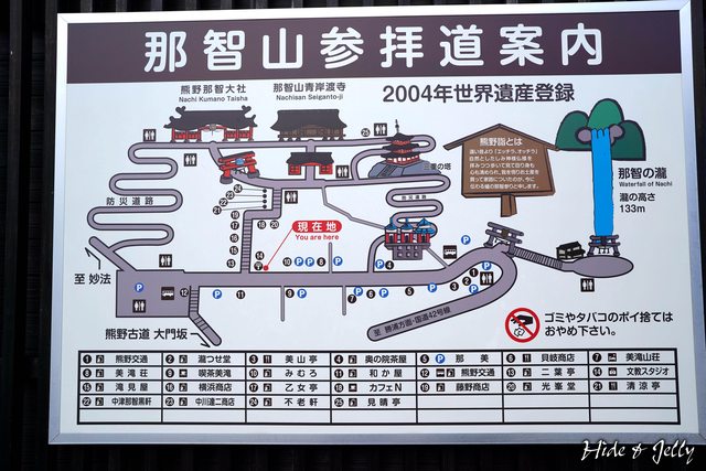 那智大社附近的地圖,包含那智瀑布與附近的名產店、停車場,都有很清楚的標示。