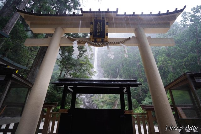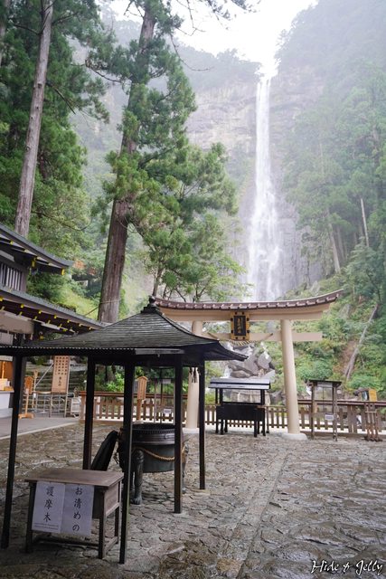 抵達最下方的飛瀧神社,透過白色的鳥居面對的就是那智大瀧了,這裡沒有御本殿,因為