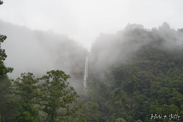 隨著雨勢越來越大,山頭間飄起了山嵐,讓那智大瀧若隱若現,更有大神降臨的樣貌,若