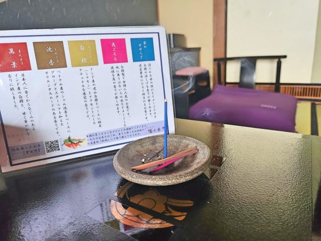 源氏香旅館的房間內還備有五款不同味道的薰香,雖然平常我喜歡噴香水或使用精油類等香