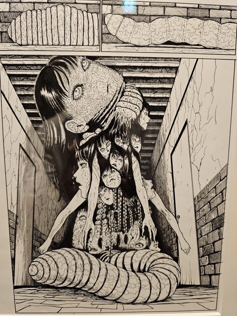 展覽內可以拍照不能錄影,好幾百幅手稿原畫,包含最知名的漩渦, 人頭氣球, 雙一,富