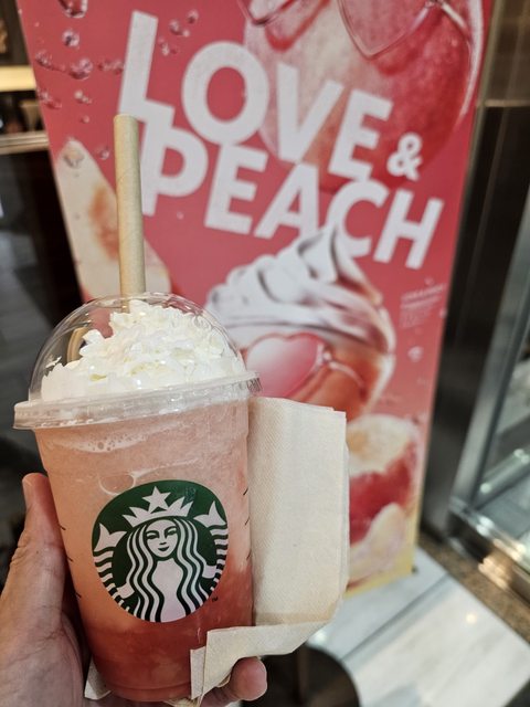 還喝了星巴克的水蜜桃星冰樂,很甜但是用料滿滿。