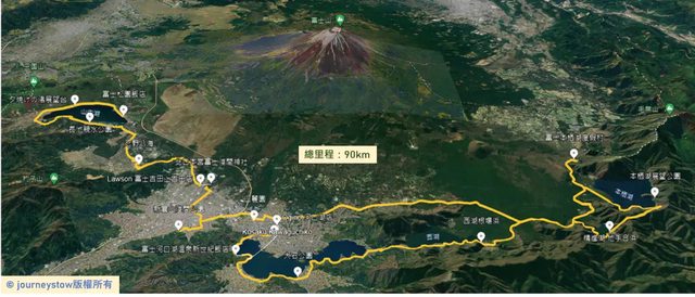 長池親水公園→忍也八海→北口本宮富士淺間神社→新倉山→富士本栖湖度假村→本栖湖→精進湖→西湖→河口湖大石公園