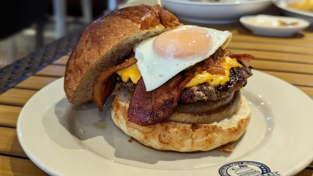 漢堡上桌,我點的是GW Burger,也就是喬治華盛頓漢堡,因為它看起來最好吃,而且也