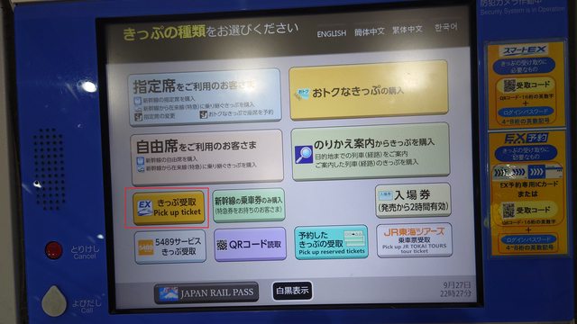 只要是有支援EX的指定席券売機皆可領票,在乘車日前3天至乘車日止開放領票