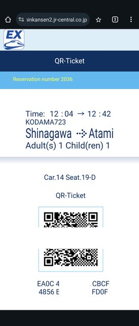 使用車票用QR-Code,從名古屋新幹線入口刷QR-Code可拿到EX票(提示用),到新橫濱新幹