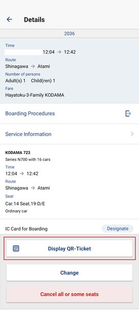 ˙B在指定席券売機掃QR-Code
