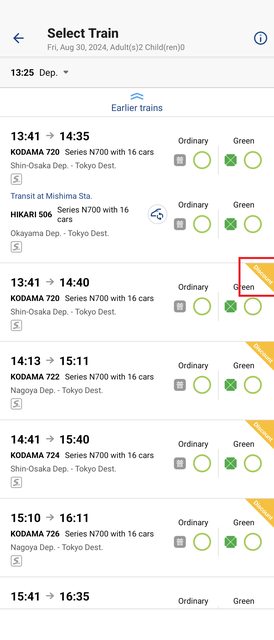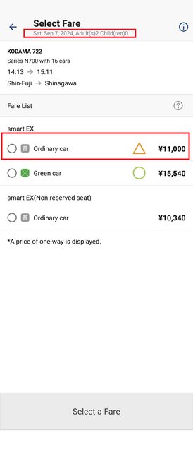 : 品川的新幹線,我用兩位成人去預約時目
