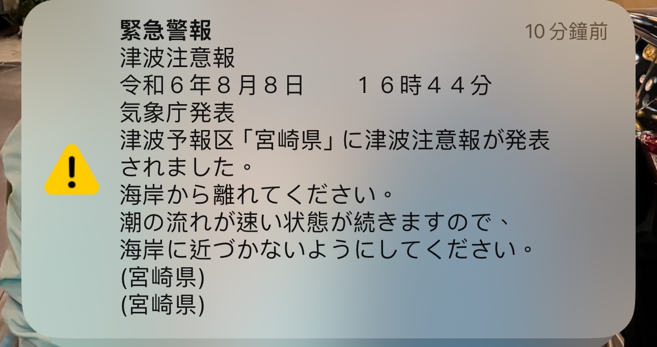 推 burnsy0018 : 剛在東京也收到地震警報 08/09 19:06