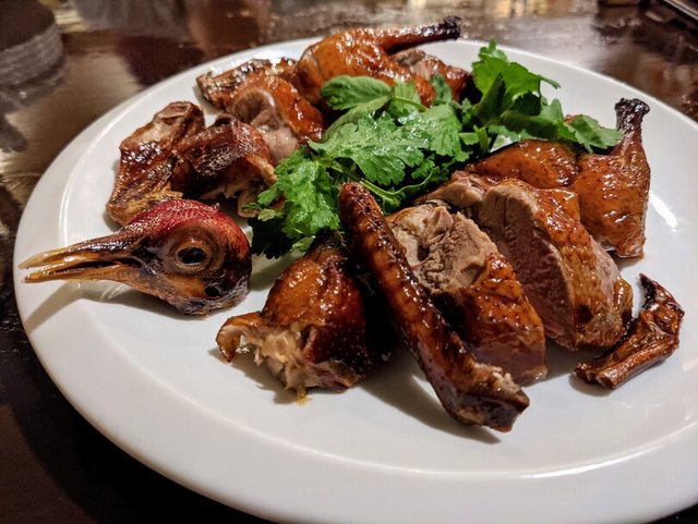 脆皮乳鴿需要提前預訂才能點,很少有店家賣這道菜,可能日本人普遍不喜歡吃有帶骨頭