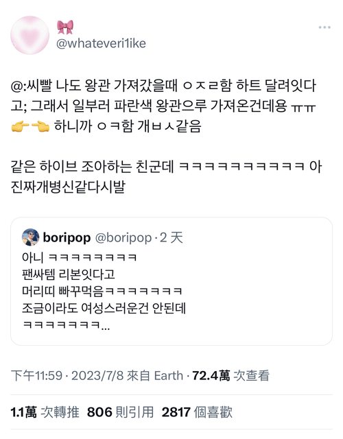 → atom1130: 絲接觸這樣絕對安全啦 笑你hybe 不敢 現 36.233.235.38 07/10 19:58