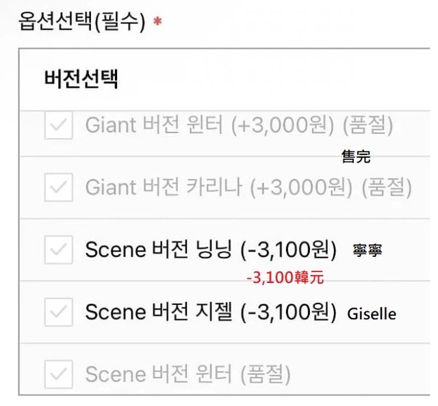 Karina和Winter的已售罄,價格上漲。