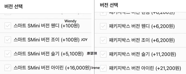 團體成員的個人版本套裝,以及其價格變動和庫存情況。由於需求大的套裝會售罄或漲價