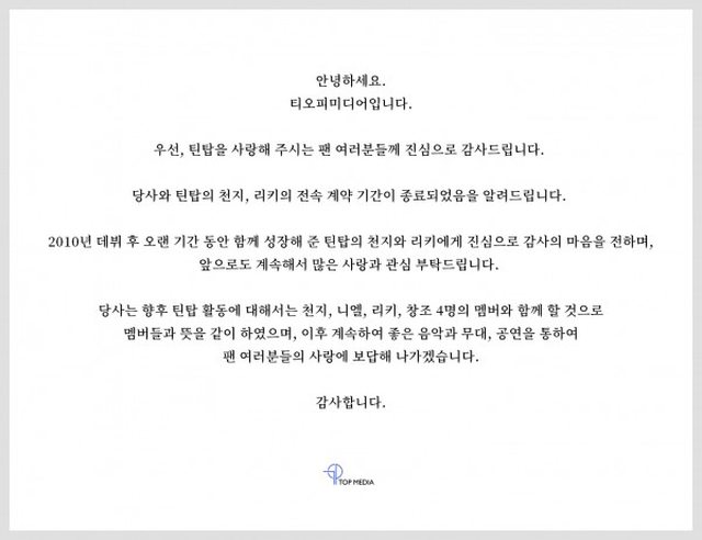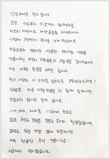 我和與我在一起度過人生的一半的TOP MEDIA合約結束了,非常感謝所有家人們。