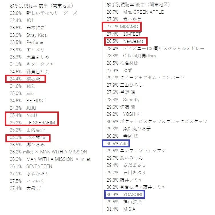 推 egg781: 你都請YOASOBI上場了,收視率有別的原因吧 36.230.138.119 01/02 23:53