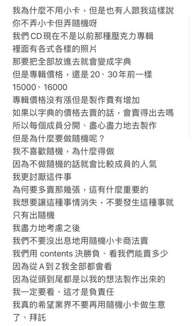 → opmina: 但如果採用隨機小卡,A成員粉絲為了抽到A 114.34.8.99 04/26 02:27