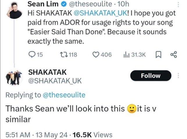 → sphinx1031: 知道Hybe就是要噁心人 但是丟出抄襲 1.163.41.210 05/14 12:27