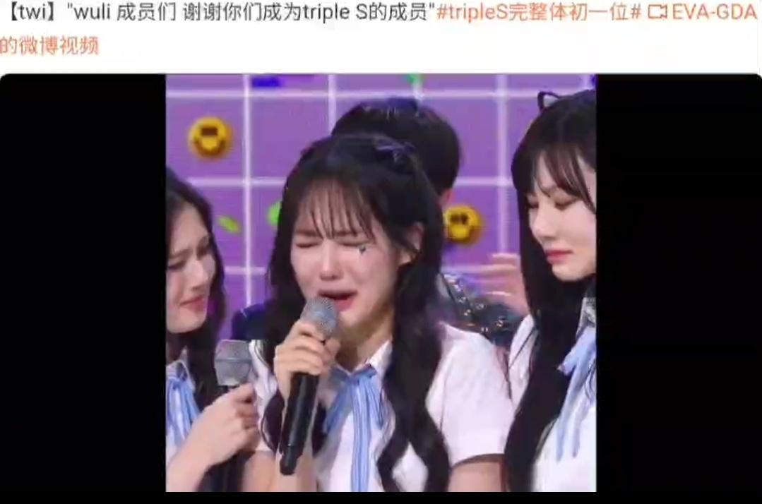 她還大哭著說「還有……還有我們的成員們,真的很謝謝妳們一起成為tripleS,謝謝」