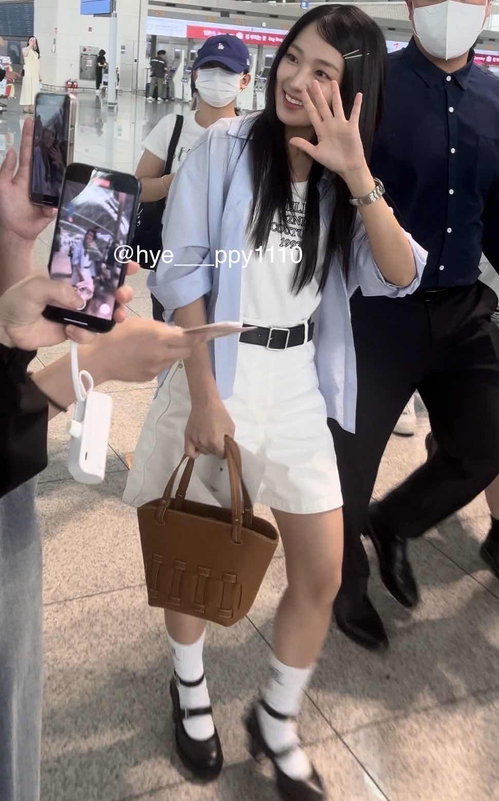 金惠奫4日為了拍攝畫報上午從仁川機場出發,她穿著淺藍色襯衫、白色短褲,搭配白色