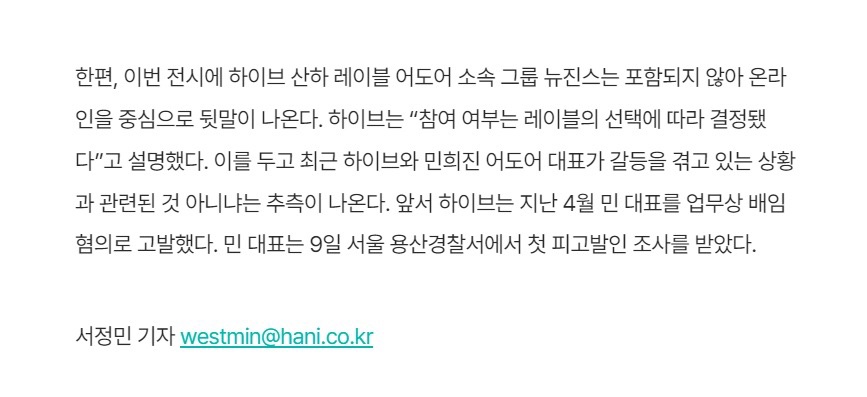 推 s8800892000: 閔都說是ADOR了 扯HYBE幹嘛 223.137.65.254 07/10 13:15