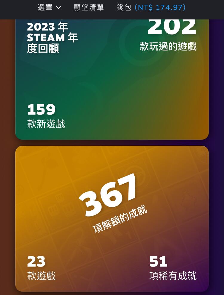 推 wacoal: 今年終於不用搶ps5大禮包之後,steam玩的數量跟去年少了些 12/19 05:09