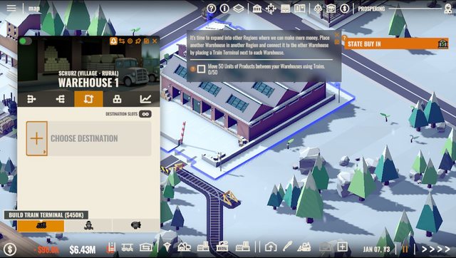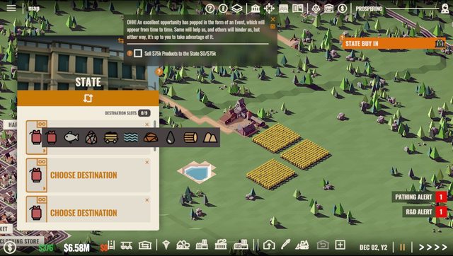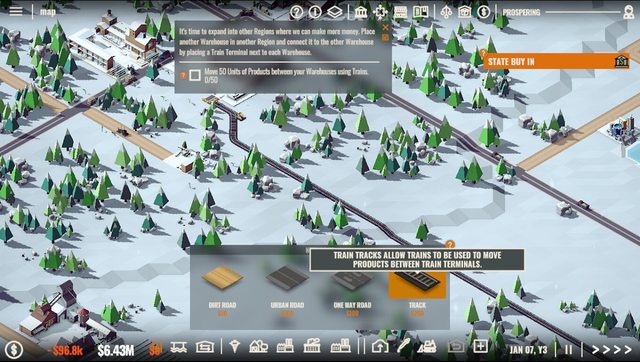 而加工下階新產品則是全部放在科技樹那邊用時間跟天數用力的拖台錢 與運輸大亨一樣有對手會慢慢在別的區域蓋房子賺錢 本作總部唯一的功能是每場開始的時候決定玩家能建設的區域,其他區域必須等拍賣會賣建設權的時候才能買,或是買下其他公司的完整股票 稍微比運輸大亨那個會隨著資產上升會越變越漂亮的總部好一點 由於地圖設計的關係,一個區域沒辦法全部挖齊全部基礎礦產,雖然遊戲還有給一個對外以原價買賣原料的設計 但運費與運輸時間就真的很誇張,販售必賠,進口就不曉得會怎樣了 教學相當怪,正常會先卡在科技樹送你免費三點要點他要求的空氣清淨廠跟火車科技,然後t2的資源兩份 點錯就要開始等等至少一百二加三百天以上的時間… 接著用火車運輸資源到倉庫之間…那個倉庫雖然運輸有自動模式,但跟Ratopia一樣…製作組預設的分配方式跟玩家想要的總是不一樣 最後就是教學直接叫你蓋三種擇一mega endgame建築,那個,教學不應該有這個吧? 跟voxel tycoon比的話,他那邊二三四級產品的收益比率實在與麻煩程度不成正比,研發也要材料更是麻煩 這片就科技樹砸錢把工廠開好放著就全開有錢,等都市升級之後再搞進階資源賺更多錢,投資報酬實感比較有趣多了 不過定時出現的拍賣加上需求任務,非常破壞遊戲擺著不動的遊戲節奏…四倍速自動鎖一倍,還要等三天 除此以外,除了生涯模式還有自由、沙盒、地圖、dlc之類的 我個人是覺得在整體遊戲架構上是有趣,就是很多資訊不透明 蓋了一間工廠開始生產之後,是賺是賠?只有每個月資金增減可以看 工廠本身只有效率、每月消耗跟運費支出而已 如果無聊到把材料用原價拿去賣州外甚至還會賠錢 雖然右下角的提示就有講越接近100%越不賺錢 http://i.imgur.com/XMrltN7.jpg