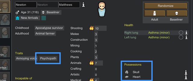 開始新一輪選擇居民的時候,現在隨機產生之後有一定的可能性會讓某些特質額外有實際物品
