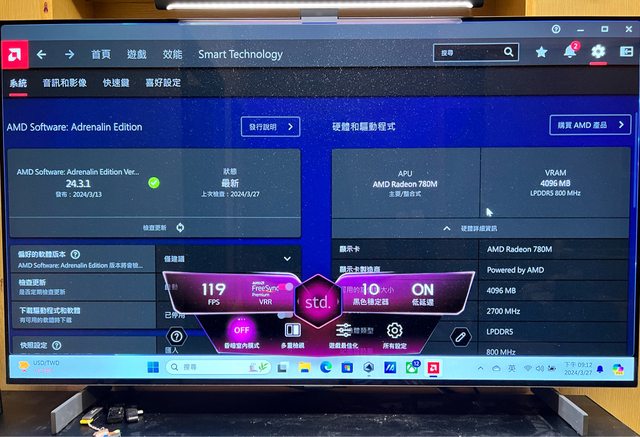 電視的ALLM+VRR都能啟用