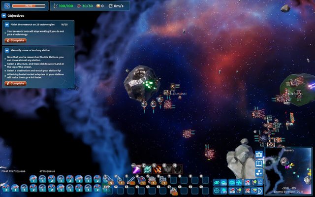 而他的建築aka太空站,一樣就是以各建築連結在一起後加裝引擎就可以整坨飛走,只是蓋越大飛的越慢…