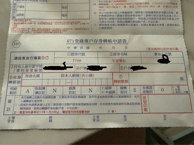 是因為全家(5903)這檔股票,要成立全家餐飲(7708),所以分割股票出來?