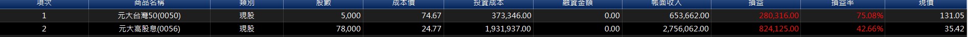 推 PTTpeter : 我萬七存股,0050套了2年多,高股息早就不知飛到哪去 12/08 12:13