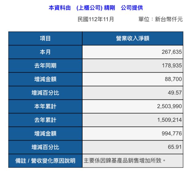 標題[情報] 1584精剛11月營收
