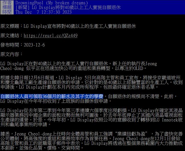→ qwe78971 : 反正科技業規則40歲就逼離職 也不是新聞現在提早而 12/11 12:12